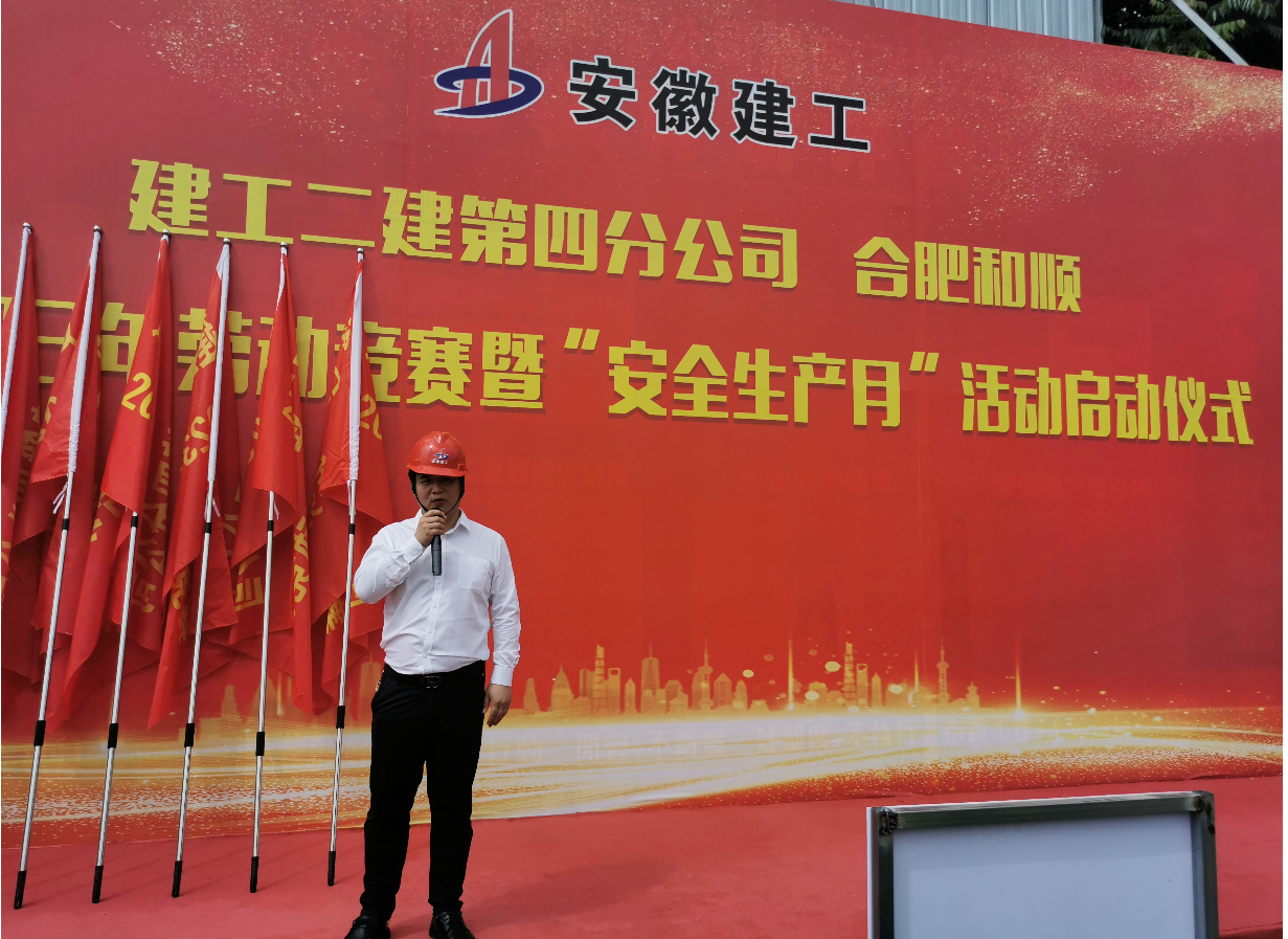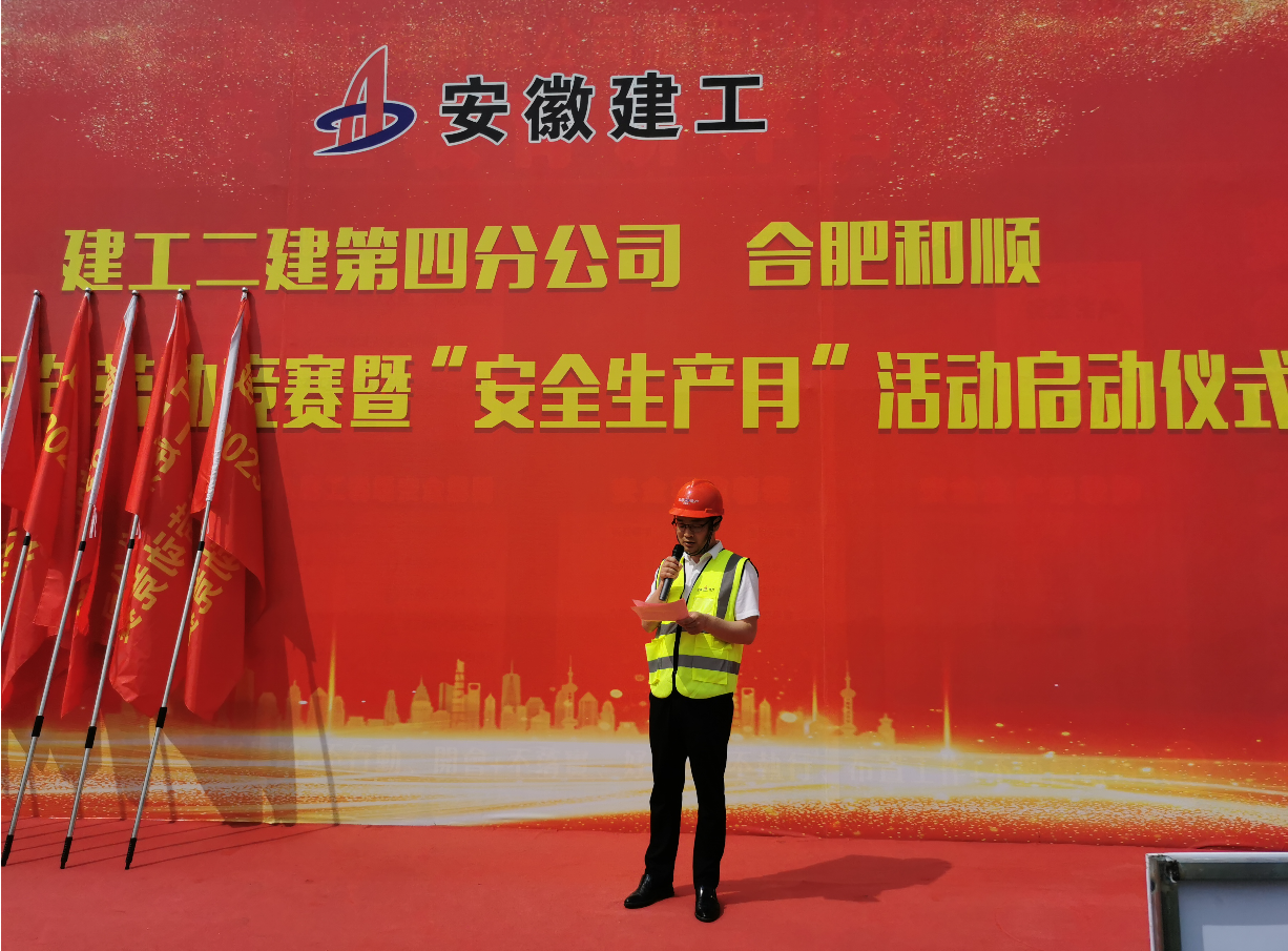 本次勞動競賽旨在充分調動廣大建設者的積極性,引導廣大職工充分發揮勞模精神、勞動精神、工匠精神,安全、優質、高效地圓滿完成施工任務?;顒蝇F場,第四分公司生產副經理周文建作動員講話,合肥和順總經理沈印、越秀地產項目總經理董大澤分別發言,第四分公司質量副經理劉韌宣讀2023年勞動競賽實施方案,參賽項目代表付奎表態發言,參加活動的領導為各參賽項目授旗。