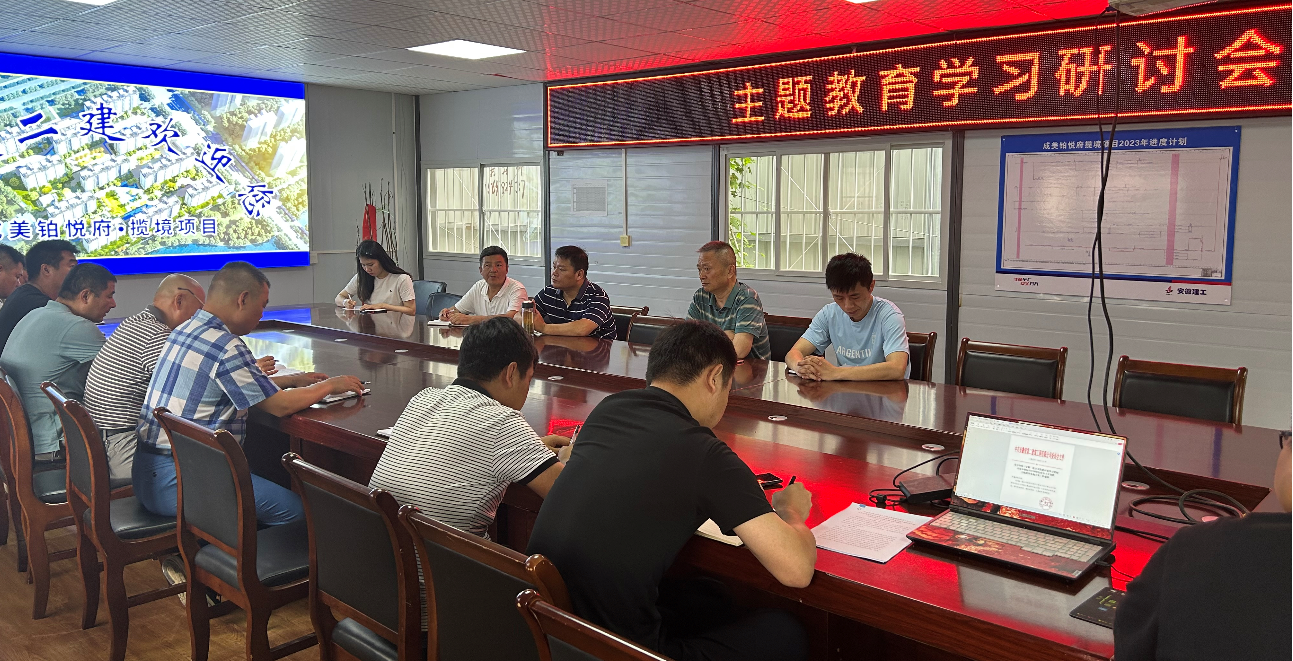 7月18日,第二公司黨支部書記黃業云至成美鉑悅府攬境項目開展主題教育“三問”交流研討。項目全體黨員參加。