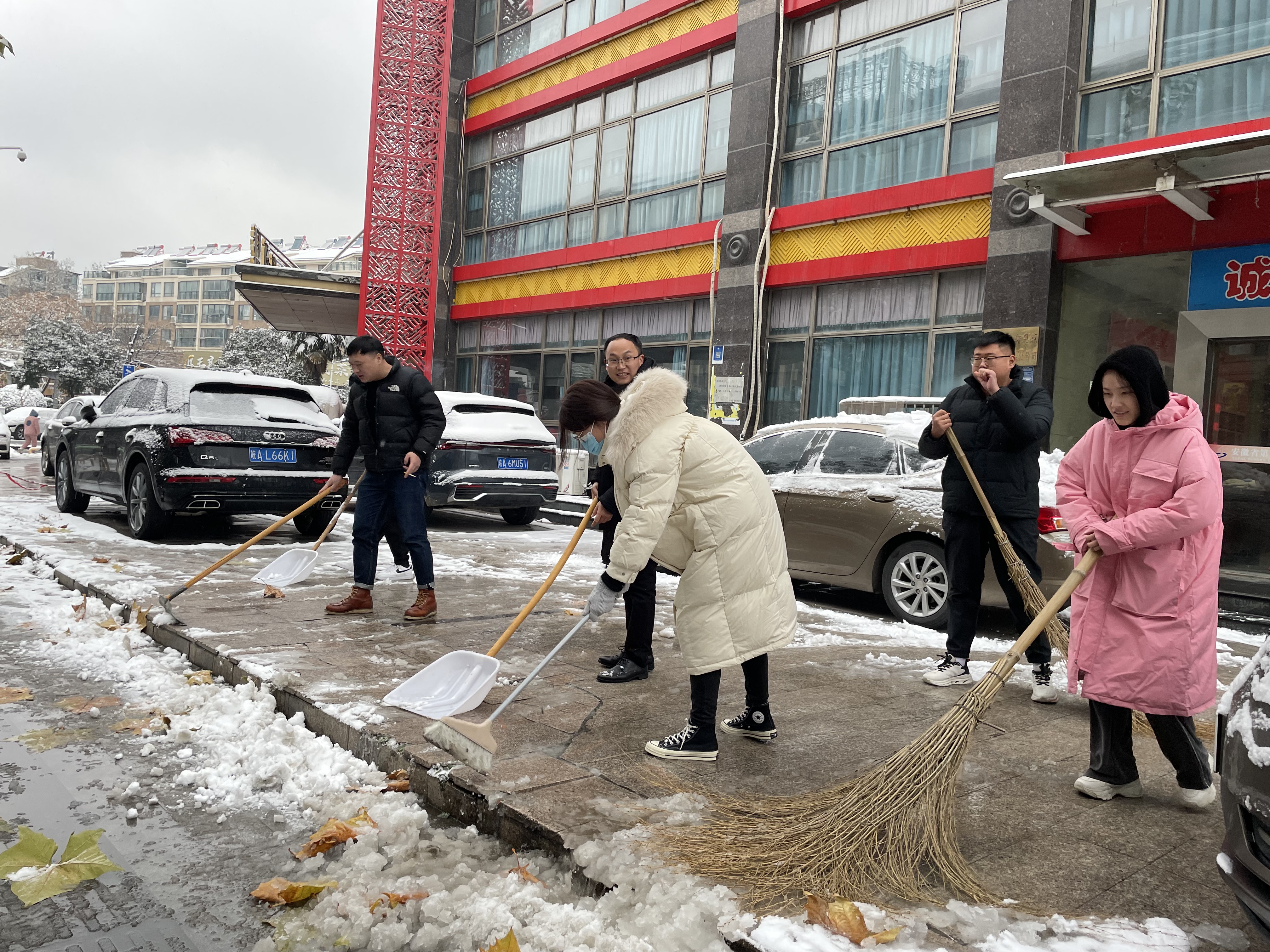 青年團員積極響應,不畏嚴寒,手拿鐵鍬、掃帚來到辦公樓前,對積雪進行大清掃。伴隨著凜冽的寒風奮戰一個多小時,終于將公司門口和內部道路積雪全部清理,開辟了一條洋溢著溫情的通暢安全路。