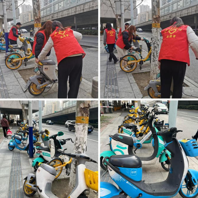 隨后,團支部立即組織青年志愿者們把吉泰嘉苑小區周邊隨意擺放的單車擺放到指定的區域內,也勸阻亂停放的路人自覺把車輛擺放在規定位置,大家干勁十足,經過辛勤勞動,共享單車陸續回歸原位。希望青年志愿者們能用實際行動影響帶動市民提高文明意識,讓共享單車為城市增加更多的舒適與方便,共同營造文明騎行、有序停放、愛護共享單車的良好氛圍。