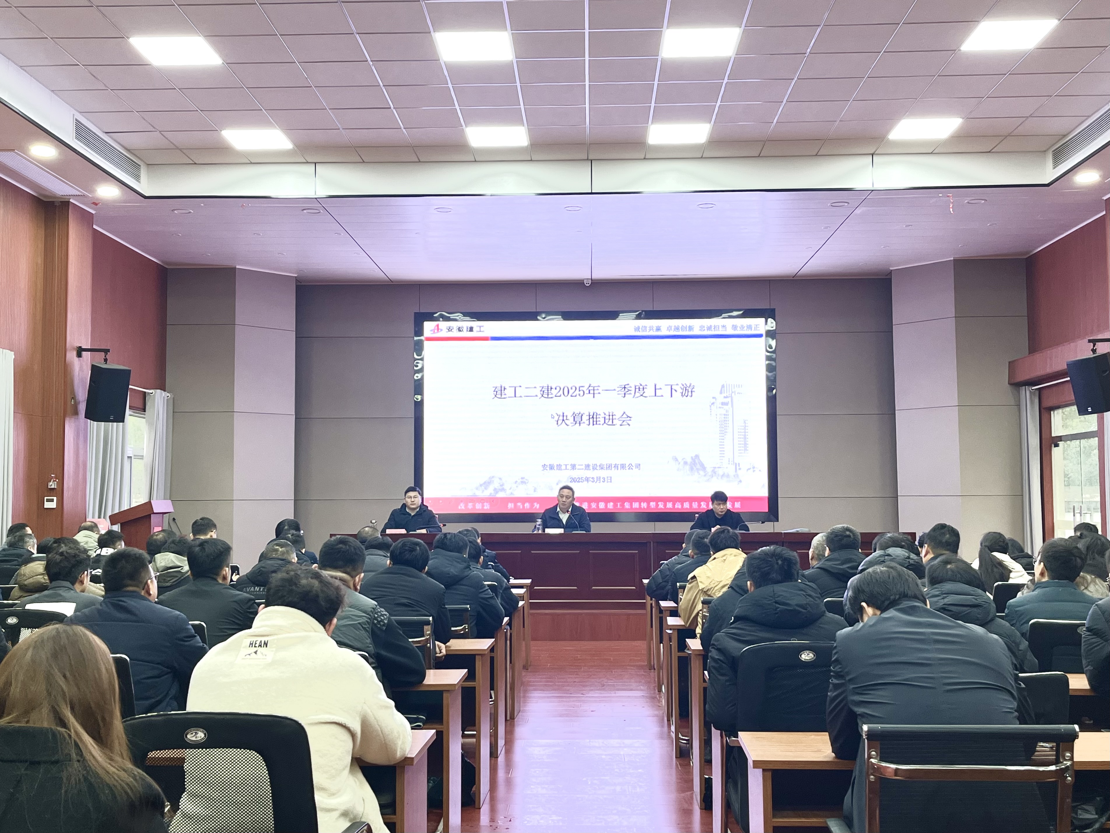 2025年3月3日,建工二建在合肥召開2025年一季度上下游決算推進會。公司副總經理代鵬飛出席會議并講話,成本管理中心副主任張玉連主持會議。