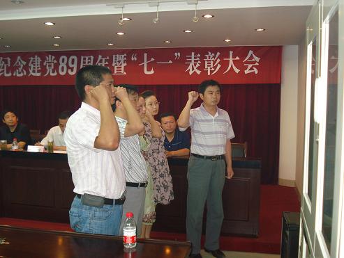 公司總經理費瑞林宣讀了2010年先進基層黨組織、優秀共產黨員、優秀黨務工作者和優秀共產黨員示范崗的決定。會上,公司黨委表彰了離退休黨支部、機關第一黨支部、機械公司黨支部3個先進基層黨組織、蒯家江等21名優秀共產黨員、章征俊等8名優秀黨務工作者和劉國良等6名優秀共產黨員示范崗。并頒發了獎牌和榮譽證書。4名新黨員向鮮紅的黨旗進行了莊嚴的宣誓。