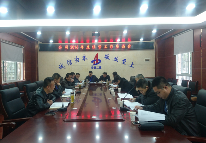 2016年12月27日下午,公司2016年度經(jīng)營(yíng)工作座談會(huì)在公司一樓會(huì)議室召開(kāi)。黨委書(shū)記劉賢奇、副總經(jīng)理劉國(guó)良、紀(jì)委書(shū)記仇多維、財(cái)務(wù)總監(jiān)項(xiàng)新元出席會(huì)議,經(jīng)營(yíng)公司、第一、二、三分公司、海外公司、安裝公司、阜陽(yáng)辦事處的相關(guān)負(fù)責(zé)人參加會(huì)議。會(huì)議由副總經(jīng)理劉國(guó)良主持。