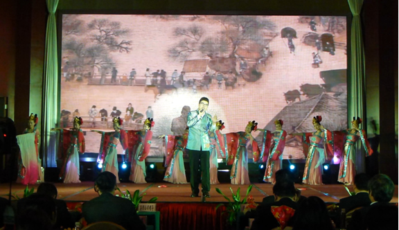 歌手章成銘動情的演唱,凌友和一段精彩的詠春拳展示以及10位姑娘們優(yōu)美的伴舞,將節(jié)目從形式到內(nèi)容演繹得淋漓盡致,博得臺下陣陣掌聲,為整場晚會的精彩演出開了好頭。