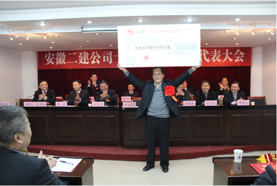 最后,黨委書記劉賢奇同志作了《轉變觀念 統一思想 增強信心 開拓進取 為開創一流安徽二建新局面而努力奮斗》的總結講話。劉書記首先對2016年公司各項工作所取得的成績給予了充分肯定,對受表彰的先進集體和個人表示了熱烈的祝賀,向辛勤工作在各個崗位上的全體二建員工致以誠摯的問候!劉書記強調,二建的掘起依賴全體二建人的共同努力,為此,提出幾點意見:一是以學習黨的十八屆六中全會為主線,進一步加強理論武裝。堅持以領導干部為重點抓好黨委中心組學習,同時深入抓好全體黨員的經常性學習教育活動;二是以弘揚求真務實之風為依托,進一步改進工作作風。工作要力求精益求精,做出品牌、做出特色,敢于批評和自我批評,虛心接受各方面意見,敢于沖破束縛我們手腳的各種框框和體制障礙,實現政治、經濟、精神文明的協調發展。三是以建設“四好”領導班子為重點,進一步加強領導班子和黨員隊伍建設。堅持把企業經營業績考核結果作為評價開展“四好”班子建設的重要依據,堅持定量考核與定性評價相結合,努力達到上級黨委、領導班子自身和職工群眾“三滿意”的效果。四是以增強企業凝聚力、向心力為目標,進一步做好職工思想政治工作和企業文化建設。五是以弘揚企業廉潔文化的抓手,進一步穩固企業反腐倡廉體系。要求公司各級管理人員要貫徹落實好“一崗雙責”,修訂完善黨內各項考核制度,形成用制度管人、用制度管事、用制度管權的工作格局。六是以創建和諧企業為載體,進一步做好群團工作。按照黨建帶群團組織建設的要求,按照總攬全局、協調各方的原則,切實發揮好公司黨委領導核心和政治核心作用。讓全體二建人在集團和公司兩級黨政班子的堅強領導下,上下同心,精誠團結,以高度的時代使命感和政治責任感,拼博進取,為開創安徽二建改革發展新局面、實現安徽二建宏偉目標而不懈奮斗!