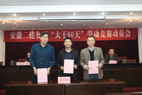 2017年已漸入歲末。為更好地全面完成年初公司既定各項經濟技術目標任務,在項目上掀起大干熱潮,安徽二建公司于11月6日下午,在原辦公樓三樓會議室召開“大干60天”勞動競賽動員會。公司領導及機關職能部門負責人、所屬各基層單位黨政一把手、公司在建20個自營項目負責人等60余人參加動員會。