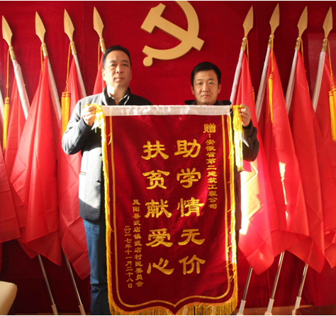 近日,安徽二建三分公司收到了鳳陽縣武店鎮(zhèn)武店村民委員會送來的錦旗,感謝安徽二建對當?shù)匾幻毨Т髮W生的資助。