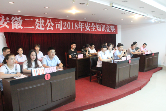 6月8日下午,安徽二建公司2018年安全知識競賽在公司原三樓會議室舉行。工會副主席蒯家江,安全總監、安全管理部主任曹建,技術質量部副主任梅紅擔任評委。各分公司領隊、安全科負責人以及各參賽代表隊參加活動。