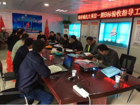黃愛民一行首先深入施工現場,分組對不同樓棟仔細檢查并重點關注現場的文明施工、揚塵治理、臨時用電、機械設備、腳手架、屋面施工等方面工作。隨后,評審專家組在會議室聽取了創建工作匯報并查看匯報資料,肯定了項目的安全管理工作,并對存在的問題提出整改意見。最后,通過綜合打分專家組一致認為該項目達到六安市“安全文明標準化示范工地”驗收標準,成功通過市標化驗收。