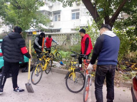 早上8點,所有參加活動的青年志愿者準時在公司大門前集合, 前往裕溪路社居委,在社區工作人員的配合下清理公司生活區綠化帶中的各類垃圾以及隱藏在綠化帶中的破舊共享單車。