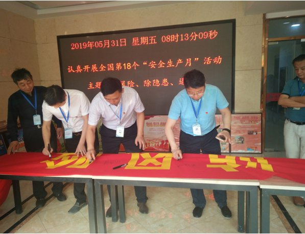 2019年5月31日,公司安全管理部、工會(huì)在公司大院舉行了全國第十八個(gè)“安全生產(chǎn)月”活動(dòng)啟動(dòng)儀式,公司機(jī)關(guān)全體職工參加。總經(jīng)理陸勤斌作啟動(dòng)講話,指出安全生產(chǎn)工作的重要性和“安全生產(chǎn)月”活動(dòng)的意義。分管安全副總經(jīng)理葉和永帶領(lǐng)全體職工進(jìn)行了安全宣誓,隨后,在印有“安全生產(chǎn)月”主題“防風(fēng)險(xiǎn) 除隱患 遏事故”的橫幅上簽名。