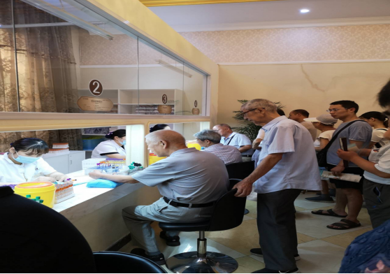 退休老職工排隊進行抽血檢查