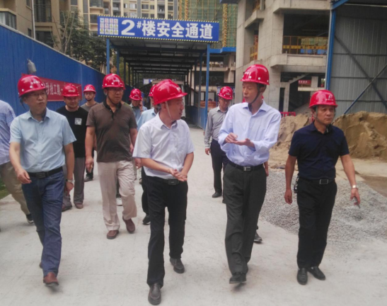 郭金友一行首先深入施工現場,分別察看施工現場道路、揚塵防治設備設施、高空作業安全防護、現場攪拌機械防護以及地材的質量管控措施,針對現場存在的問題給予指導并要求及時整改。