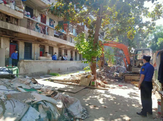 后勤綜合服務部和城管科工作人員聯合拆除違章搭建