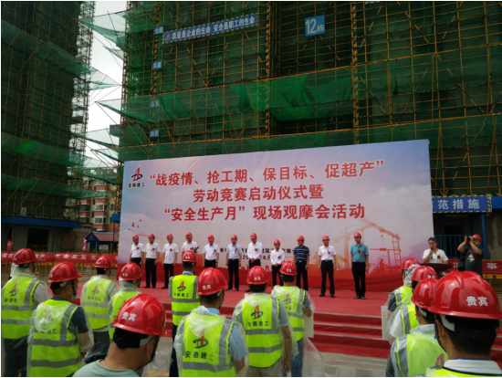 6月18日,安徽二建公司在淮北國(guó)金華府(紫麟苑)項(xiàng)目舉行“戰(zhàn)疫情、搶工期、保目標(biāo)、促超產(chǎn)”勞動(dòng)競(jìng)賽啟動(dòng)儀式及安全生產(chǎn)月系列宣傳教育活動(dòng)。公司領(lǐng)導(dǎo),工會(huì)、黨委工作部工程管理部、安全管理部、技術(shù)質(zhì)量部部門(mén)負(fù)責(zé)人,所屬各單位主要領(lǐng)導(dǎo)、分管安全副經(jīng)理、安全科長(zhǎng),項(xiàng)目經(jīng)理及安員共二百余人參加,淮北市監(jiān)管局及建設(shè)單位相關(guān)領(lǐng)導(dǎo)應(yīng)邀參加了活動(dòng)。