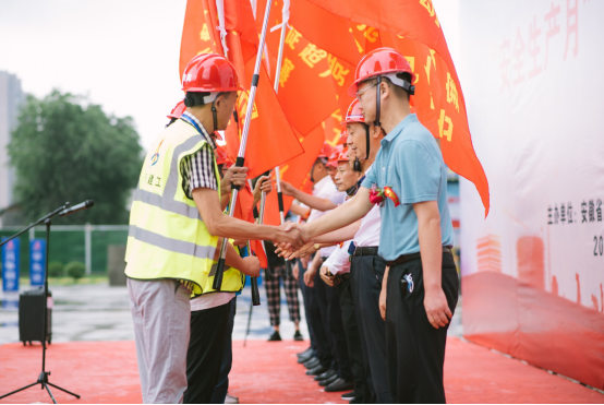 之后,公司工程管理部副主任丁光啟宣讀了2020年勞動(dòng)競(jìng)賽方案;總經(jīng)理助理、一分公司經(jīng)理崔書(shū)斌代表勞動(dòng)競(jìng)賽參賽單位進(jìn)行了宣誓;參加啟動(dòng)儀式的領(lǐng)導(dǎo)向參賽單位進(jìn)行授旗。最后,陸勤斌宣布安徽二建公司“戰(zhàn)疫情、搶工期、保目標(biāo)、促超產(chǎn)”勞動(dòng)競(jìng)賽正式開(kāi)始。