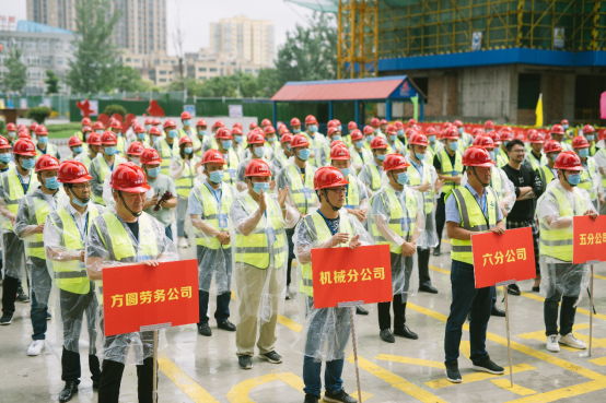 6月18日上午,安徽二建公司“戰(zhàn)疫情、搶工期、保目標(biāo)、促超產(chǎn)”勞動(dòng)競(jìng)賽啟動(dòng)儀式在淮北國(guó)金華府(紫麟苑)項(xiàng)目現(xiàn)場(chǎng)舉行。淮北市住建局唐成營(yíng)處長(zhǎng)、副處長(zhǎng)張喜明、質(zhì)監(jiān)站徐棟副站長(zhǎng)、淮北市相山區(qū)住建局呂鵬宇局長(zhǎng)、淮北國(guó)金置業(yè)有限公司董事長(zhǎng)許偉應(yīng)邀出席儀式。公司領(lǐng)導(dǎo)班子成員、機(jī)關(guān)相關(guān)部門人員及所屬各單位主要領(lǐng)導(dǎo)、分管安全領(lǐng)導(dǎo)等共計(jì)150余人參加活動(dòng),工會(huì)女工主任王俊主持啟動(dòng)儀式。