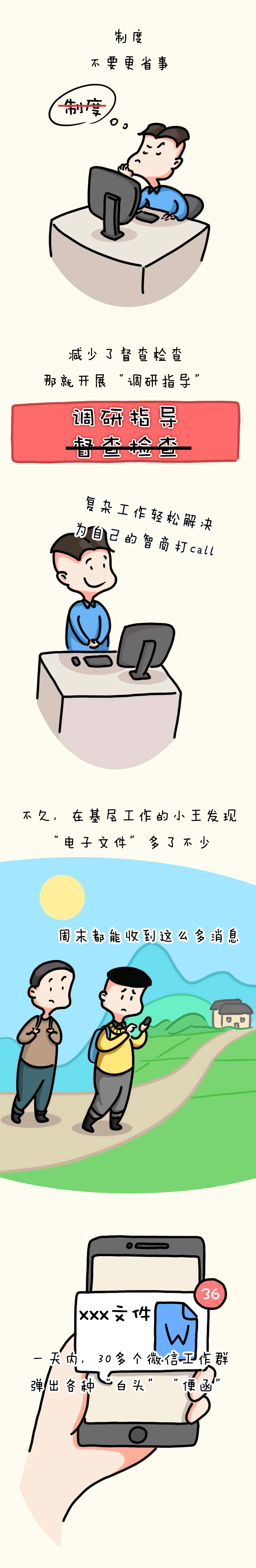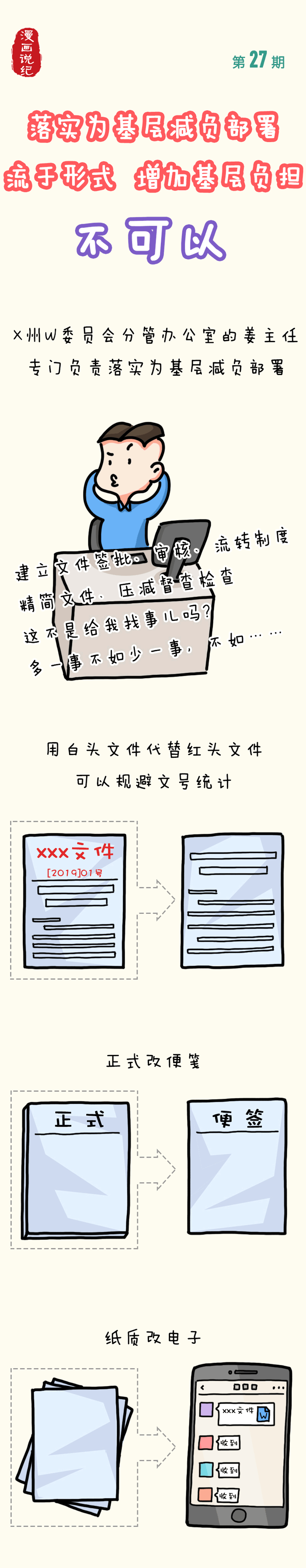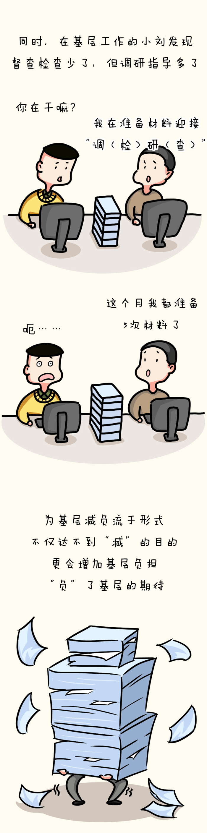 漫畫說紀丨落實為基層減負部署流于形式 增加基層負擔 不可以