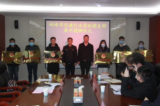 2021年2月2日上午,蚌埠市住房城鄉(xiāng)建設(shè)行業(yè)首批團(tuán)支部集中授牌儀式在蚌埠市住建局舉行。會(huì)議由蚌埠市住建局副縣級(jí)領(lǐng)導(dǎo)王明芳主持。蚌埠市住建局黨委書記、局長王家渠,黨委委員、副局長汪文學(xué);蚌埠市團(tuán)市委黨組副書記韓見,組織部部長、少年部部長雷蕾;蚌埠市建筑管理處黨委書記、主任唐士全,團(tuán)委書記韓道斌;蚌埠市住建系統(tǒng)團(tuán)工委書記鄒振飛同志出席授牌儀式。安徽二建公司蚌埠溪湖湖山春曉、山香安置房項(xiàng)目參加市住建行業(yè)首批團(tuán)支部集中授牌。