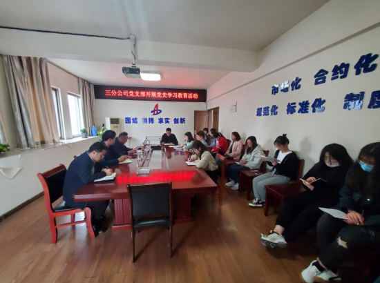 三分公司黨支部開展黨史學(xué)習(xí)教育活動,分公司機關(guān)全體人員參加,活動由支部書記陳習(xí)武主持。首先,陳習(xí)武帶領(lǐng)大家學(xué)習(xí)了二建黨發(fā)【2021】13號文《安徽二建公司黨委關(guān)于開展黨史學(xué)習(xí)教育的工作方案》,并就分公司黨支部的黨史學(xué)習(xí)教育活動做了詳細(xì)安排部署,要求全體黨員干部把思想和行動統(tǒng)一到集團、公司黨委的決策部署上來,高標(biāo)準(zhǔn)、高質(zhì)量完成黨史學(xué)習(xí)教育各項任務(wù),努力做到學(xué)史明理、學(xué)史增信、學(xué)史崇德、學(xué)史力行,以優(yōu)異成績迎接建黨100周年。隨后,陳習(xí)武帶領(lǐng)大家上了一堂生動的黨史課?!皬纳虾J瘞扉T到嘉興南湖,一艘小小紅船承載著人民的重托、民族的希望,越過急流險灘,穿過驚濤駭浪,成為領(lǐng)航中國行穩(wěn)致遠(yuǎn)的巍巍巨輪?!薄Mㄟ^視頻和講解相結(jié)合,為大家敘述了從中國共產(chǎn)黨成立到建立新中國,28年間,黨召開了一次次重要會議。這些會議作出的決策,指引了中國革命的方向,推動了歷史進程,具有里程碑意義。大家紛紛表示,將從黨史中汲取智慧和力量,堅定信仰信念,進一步提高黨性修養(yǎng),不忘初心,以實際行動發(fā)揮好黨員干部的模范帶頭作用,積極投入到干事創(chuàng)業(yè)中去,為分公司的發(fā)展添磚加瓦。