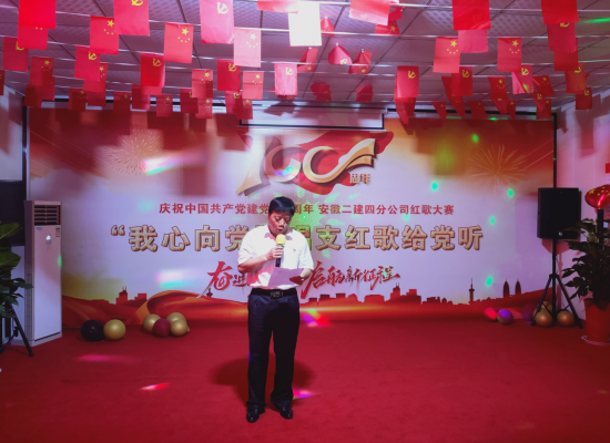 6月24日晚,由四分公司黨支部、工會、團支部聯(lián)合舉辦的“傳唱紅歌、歌頌祖國”紀念建黨100周年主題紅歌賽在宿州三館一院一中心PPP項目部會議室隆重舉行,機關(guān)科室和所屬項目部的十六支隊伍參加了比賽,用歌聲頌黨,以行動獻禮。