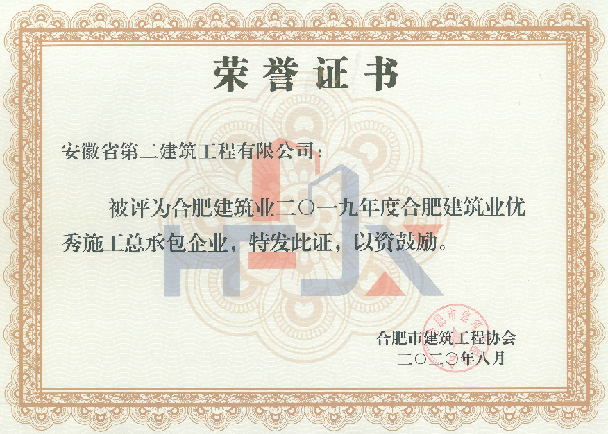 2019年度合肥建筑業優秀施工總承包企業