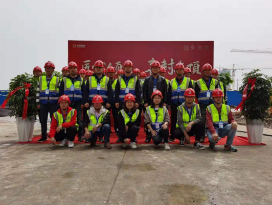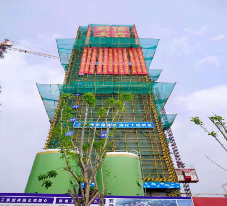 2021年4月27日10點28分,在隆隆炮聲中,伴隨著最后一方混凝土澆筑到位,一分公司承建的泗縣多金城項目首開之一的G8#樓舉行了隆重的封頂儀式。建設(shè)、監(jiān)理、設(shè)計、勘察等參建單位及項目部全體員工參加了封頂儀式。