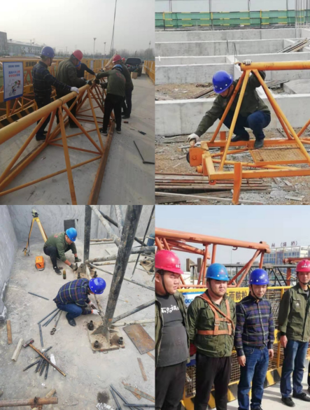 11月16日17日,機械分公司經理周俊隨同安拆人員來到宿州遠東汽配城項目現場,實地進行安全督導,排查安全隱患,進行安裝,確保項目4#樓5510塔吊的順利安裝。