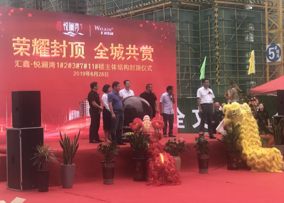 2019年6月28日,臨泉匯鑫·悅瀾灣一期B標段工程7#、11#主體結(jié)構(gòu)封頂。匯鑫集團常務(wù)副總經(jīng)理云飛、副總經(jīng)理王坤 、 臨泉匯鑫置業(yè)總經(jīng)理趙光祥、安徽奧特萊斯企業(yè)管理有限公司總經(jīng)理俞修平、安徽阜陽中盛建設(shè)有限公司董事長張軍、安徽省第二人民醫(yī)院副院長段報喜、安徽二建公司第二分公司經(jīng)理孟慶武等領(lǐng)導(dǎo)出席儀式。