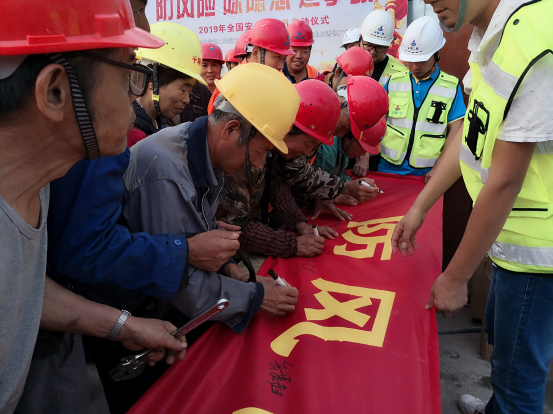 6月1日上午,阜陽吾悅廣場項(xiàng)目舉行“安全生產(chǎn)月”啟動(dòng)儀式暨安全宣誓簽名活動(dòng),項(xiàng)目全體成員及一線工人一百余人在講評臺前莊嚴(yán)宣誓,響亮而渾厚的聲音,意義非凡的誓詞讓廣大員工心靈得到了震撼,同時(shí)明白,只有堅(jiān)決守住安全生產(chǎn)紅線,才能使家庭幸福美滿。