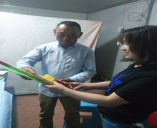 在生活區(qū),鄭書記為工人送去蠅香、夾鼠板、蒼蠅拍等必要的生活用品,并強調在做好安全生產的同時,也要做好衛(wèi)生防疫工作,良好的生產和生活條件是確保工人身體健康、安全生產工作的必要前提。