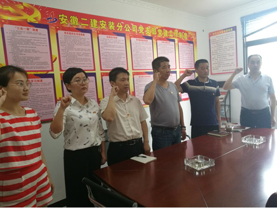 不忘初心,重溫入黨誓詞。分公司6名黨員及入黨積極分子重溫入黨誓詞,通過莊嚴的儀式,提醒黨員干部時刻謹記黨旗下的承諾,踐行黨章要求。