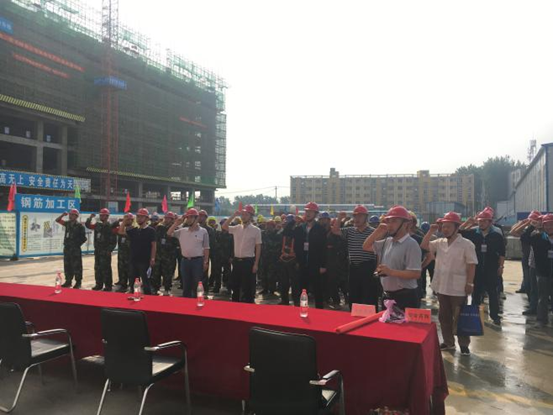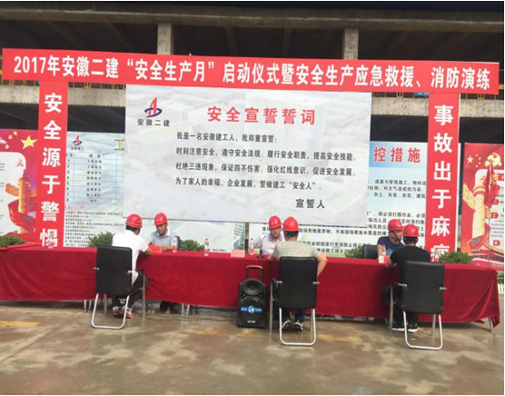 2017年6月8日上午,由安徽二建承建的太和發藝時尚文化園公共服務中心項目開展2017年“安全生產月”啟動儀式暨安全生產應急救援、消防演練活動,正式拉開了以“全面落實企業安全生產主體責任”為主題的安全生產月活動序幕。公司副總經理葉和永,安全管理部、工程管理部、保衛部、太和PPP項目負責人、班組長、一線作業施工人員等百余人參加了此次活動。