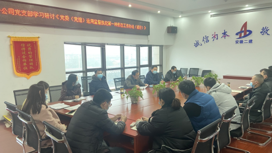 近期,為認真落實全面從嚴治黨主體責任和監督責任,踐行“四種形態”,強化“第一種形態”運用。安徽二建公司所屬各單位組織學習了《黨委(黨組)運用監督執紀第一種形態工作辦法(試行)》。