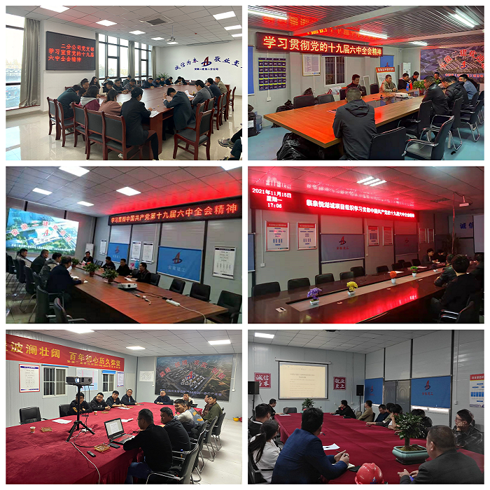第二分公司黨支部開展“黨員活動日”暨專題學習活動,學習宣貫黨的十九屆六中全會及安徽省第十一次黨代會精神精神。會議強調,要切實用會議精神統一思想、凝聚共識、指導實踐、推動工作。分公司所屬項目部積極響應號召,開展學習宣貫活動。
