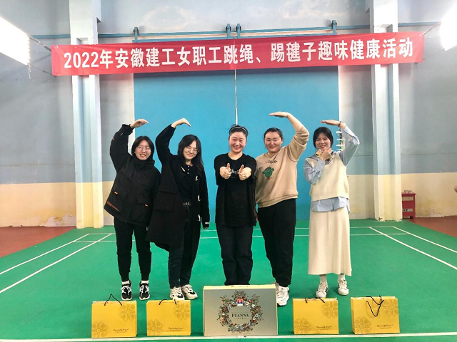3月4日下午,集團(tuán)舉辦的2022年女職工跳繩、踢毽子趣味健康活動在路橋公司羽毛球館舉行。公司工會副主席、女工委主任王俊代表二建參加女工委組踢毽子比賽,第一分公司徐欣琪、趙玉琦,第二分公司孔慧萍、王欣悅四人代表二建參加女職工組跳繩和踢毽子比賽。