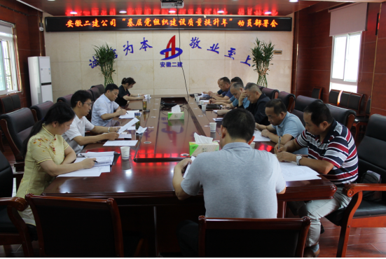 9月2日上午,安徽二建公司在一樓會(huì)議室召開(kāi)了“基層黨組織建設(shè)質(zhì)量提升年”活動(dòng)動(dòng)員部署會(huì),公司黨委副書記、工會(huì)主席王軍主持會(huì)議并做工作安排,黨委工作部主任、所屬各黨支部書記參加會(huì)議。