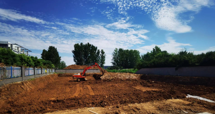 7月15日,宿徐產業園一期房建項目56畝孵化園廠房入場道路路基開始施工,現場大門、圍墻、辦公區場地清表,場地平整,臨水臨電等工作相繼開展;7月24日,消防站做現場施工準備,8月9日基礎土方開挖,正式進入施工階段;8月18日垃圾中轉站開始做現場施工準備。