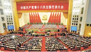 中國共產黨第十六次全國代表大會于2002年11月8日至14日在北京召開。這次大會應到正式代表2114名、特邀代表40名(共2154名)(出席開幕式的代表和特邀代表共2134人),代表了全黨6600多萬黨員。大會通過關于《中國共產黨章程(修正案)》的決議,把“三個代表”重要思想同馬克思列寧主義、毛澤東思想、鄧小平理論一道確立為黨必須長期堅持的指導思想。